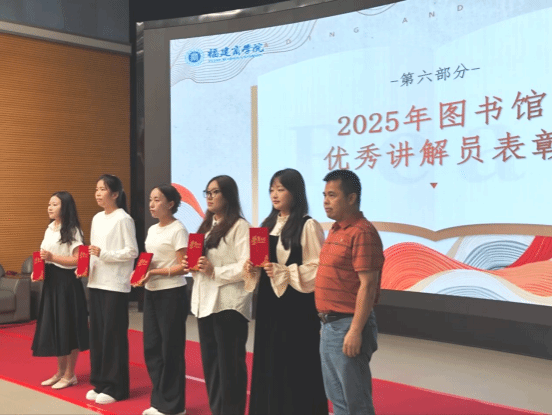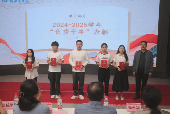 会上,图委会指导老师向第一届学生干部颁发了聘书,并宣读了第二届学生干部名单,标志着新一届学生干部队伍正式接棒。学生干部代表罗翎丹同学作表态发言,她表示将牢记嘱托,不负期望,与图委会全体同学团结协作、开拓进取,以实际行动书写新篇章。大会同时对2024-2025学年优秀干事、2025年图书馆优秀讲解员以及第八届福建省大学生书评大赛校内赛获奖同学进行了表彰。